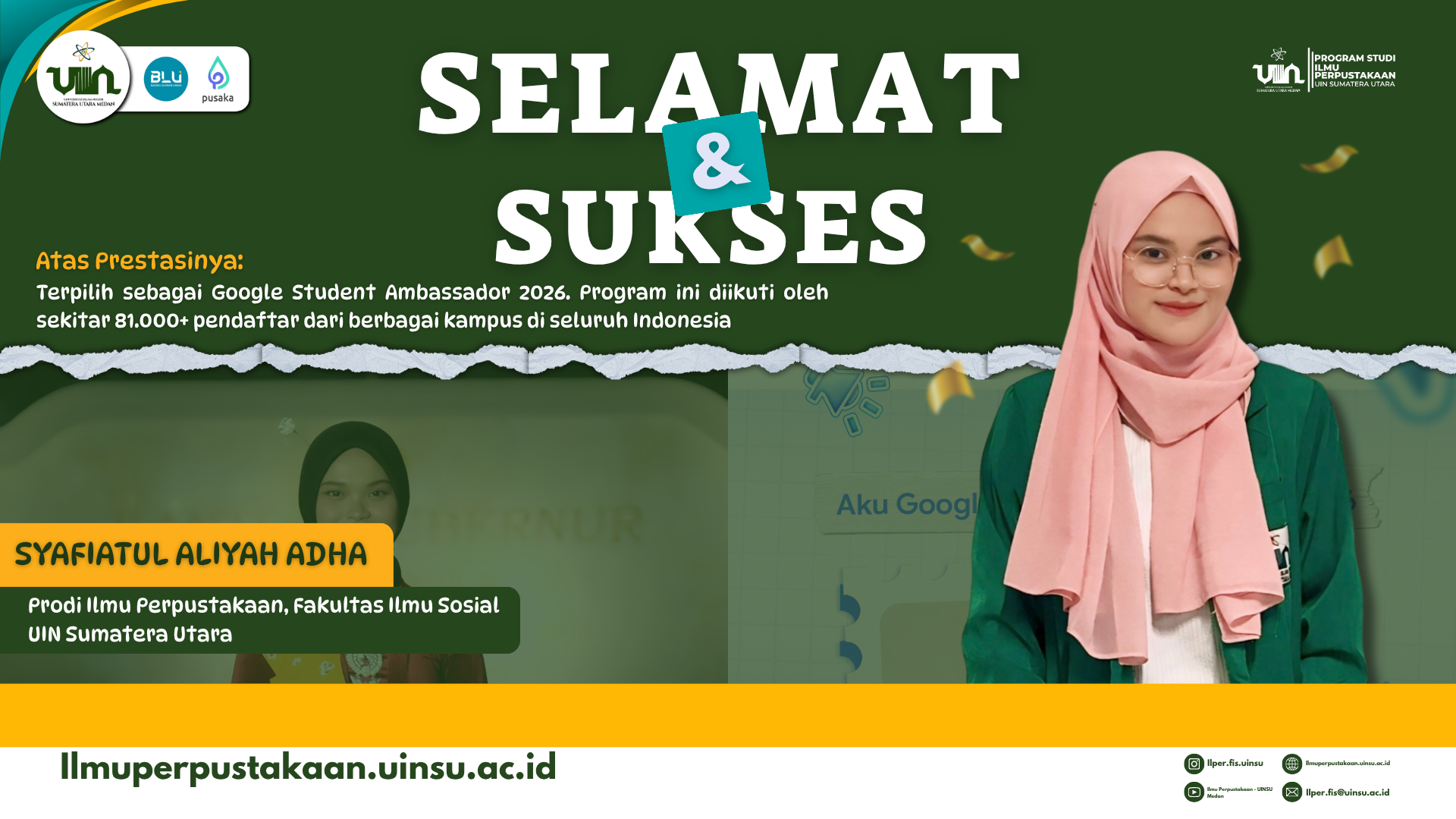 Mahasiswi Ilmu Perpustakaan UINSU Terpilih menjadi Google Student Ambassador 2026 dari +81.000 pendaftar se-Indonesia April 6, 2026April 7, 2026 Team Media Ilmu Perpustakaan no comment on Mahasiswi Ilmu Perpustakaan UINSU Terpilih menjadi Google Student Ambassador 2026 dari +81.000 pendaftar se-Indonesia
